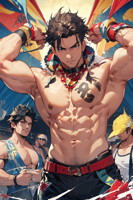 @yonyon76 某AIサイトで「Maximum Muscle Macho Carnival Guys !」って魔法を唱えた結果がこちら