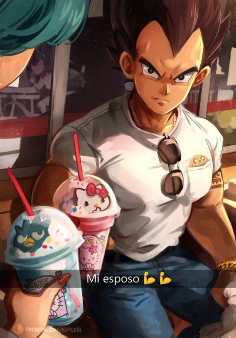 Jajajaja Vegeta con batido de hello Kitty es lo más machomen que he visto 💪❤️