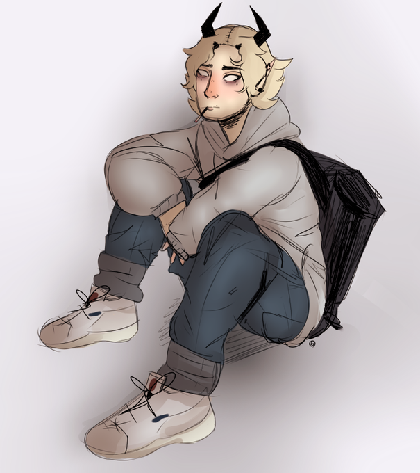 i created this ugly idiot and yet i hate drawing him. #demonoc #maleoc #artistsontwitter #maledemonoc #doodle #anatomypractice