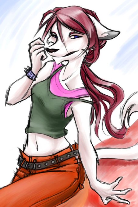 So uh, halfway through designing she may have been turned into a robot. Whoops lol. I liked her hair so much I kept the shape as it was. Her arms are made of a special malleable metal that can take shape into her blades when need be! @ScorchVx https://t.co/8xGoKpYVFd