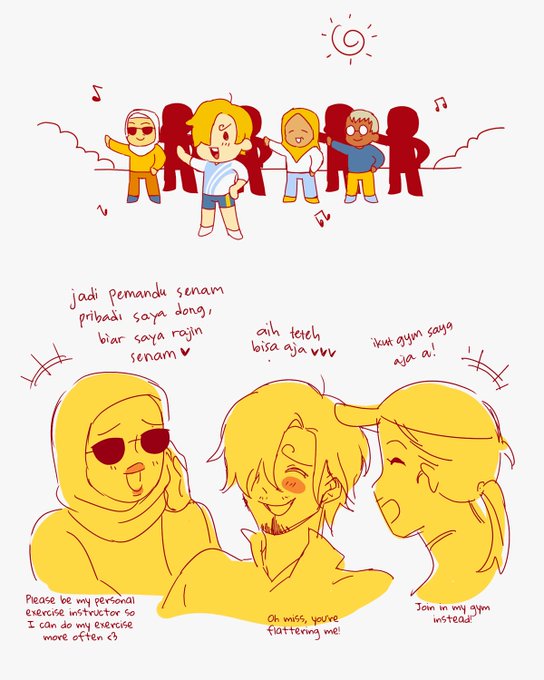 sanji as pemandu senam pagi idolanya para mba2/ibu2 😚 (sanji as exercise/aerobics instructor who is idolized by the local women, both young and old)