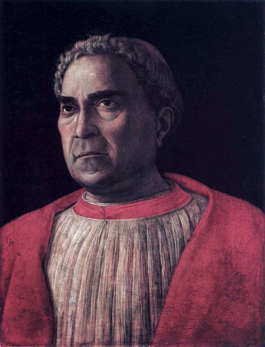Presentation at the Temple (1460), Cardinal Trevisan (1459-60) & St George (1460). The Portrait came about when the Pope commissioned Mantegna to paint the Cardinal who was part of the Council of Mantua (1459). The Council sought to rally Europeans against the Ottomans