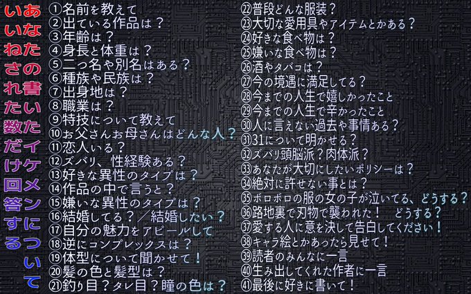 久々にやりたくなった。 と言う事で今回はアオイです。 #あなたの書いたイケメンについていいねされた数だけ回答する #Manyメモ用
