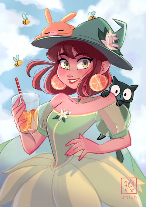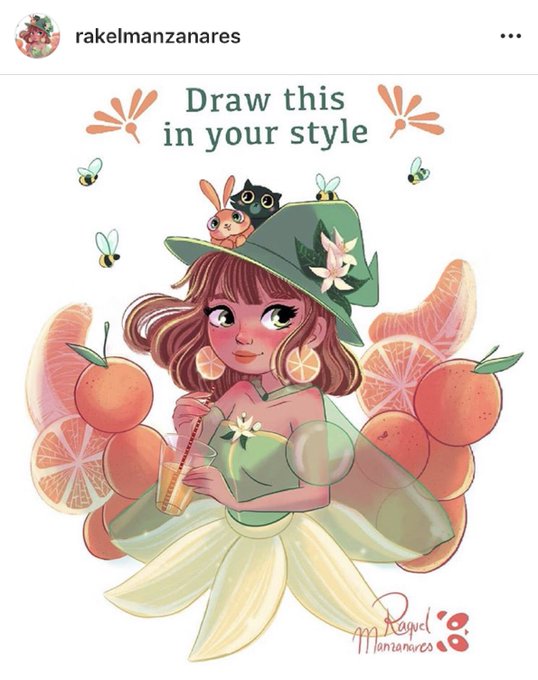 Another #drawthisinyourstyle #drawthisinyourstylechallenge this time from my friend @RaccoonMV 🐰💖🐼 She is a great artist and a lovely friend. She did this cute witch. I really love it! 💖 and I hope you like! #drawrakelmanzanares #witch #summer #cat #bunny