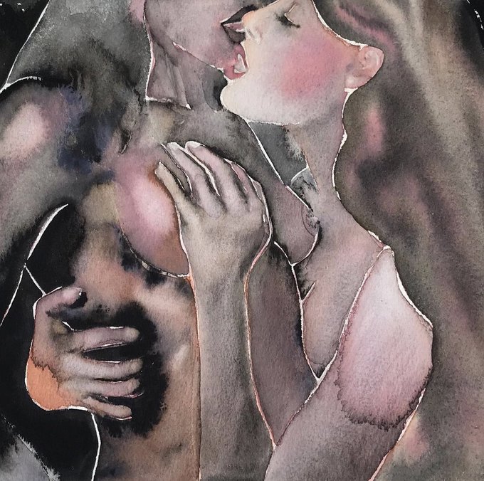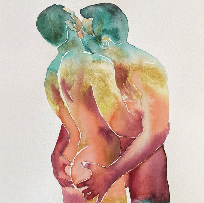 Sensual and erotic figurative watercolor paintings on paper from a female perspective.