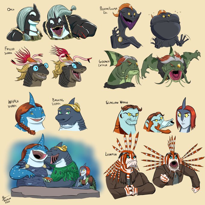 My collection of biology-inspired Merfolk portraits so far!