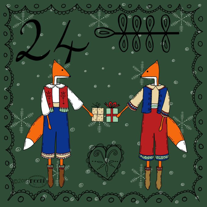 This folky fox is putting up a seasonal wreath for No 5 of my Advent calendar. When do you start putting up your decorations?