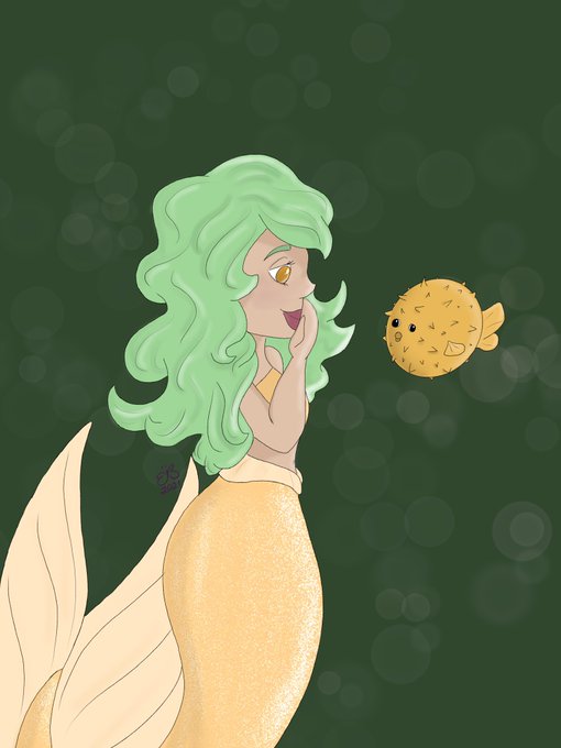 #digitalart #ipadpro #procreate #artist #art #mermaid #mermiadfins #fins #blowfish #bubbles #fish #ocean #sea #yellow #green #mermaidartist #lovemermaids #sparkles #oops