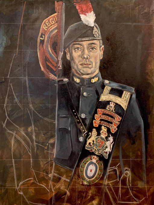 Started this portrait in oils of a Fusilier with Regimental Colours. Based on a fantastic photo by Alex Welirang @war_lens still a work in progress #portraits #portraiture @FirstFusiliers @LondonFusiliers @FusiliersRHQ #armyart #militarypainting #oilsketch