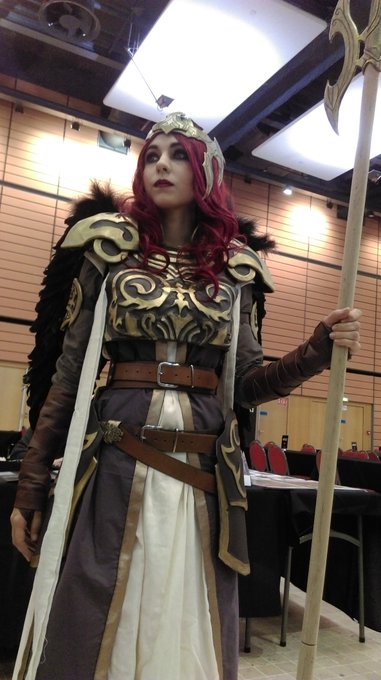 Last day at #MTGLondon. Wearing Serra cosplay today, illustrated by @Cathaoir1