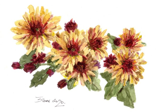 Chrysanthemums. Sketched today in watercolor.