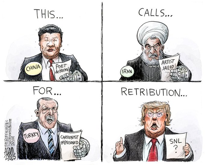 In free societies, satirists can ridicule their leaders without threats of "retribution." Other places not so much... #SNL #Trump #China #Iran #Turkey #MusaKart #satire #freespeech #authoritarian @TheBuffaloNews https://t.co/DIaShPlnbn