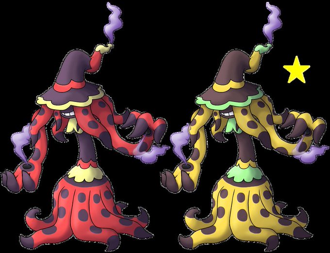 @_PrimaMedia_ Ask and you shall receive! Sporcane and Mystelium here are Poison/Psychic-types based on stinkhorns and witches. Too bad the genus name of the skirted stinkhorn that the first stage is based on isn't work-safe, but I meant to make the cap into a witch's hat anyway! 😆