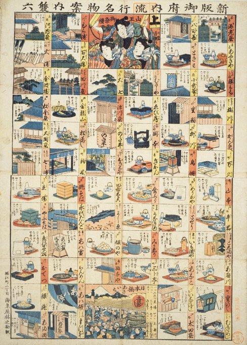 This #sugoroku is from the late Edo period, when culinary culture reached full maturity. If you have a chance to visit Japan someday, try a variety of Japanese dishes! #ndldigital
