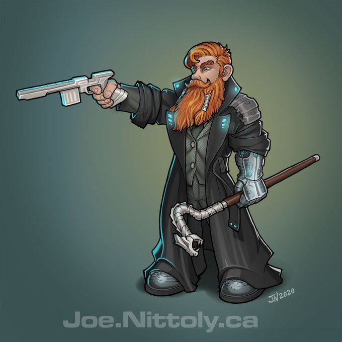 @celilia_arts @EwylanaR Here are: a Shadowrun Dwarf character commission, a "Gadgeteer" (just a quick idea), plus a couple of more recent game art illustrations for a modern/sci-fi TTRPG mod I'm designing called NearFuture5e (https://t.co/69w78ntG1e)