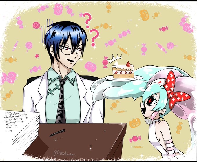 お題から、マカロンで「ひたすらマカロンに囲まれる15」です!!見切れちゃいましたが、15が持っている鍵の形をしているのはフォークです!!! #nnbkタイムズ #nnbkArt
