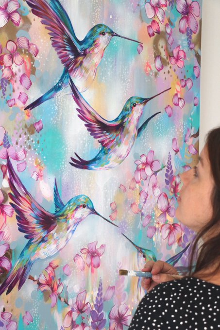 Heavenly hummingbirds 💗 Here’s the final painting I’m exhibiting in in - its dreamy blossoms offering beautiful escapism 🌸 https://t.co/FK2OKf9eZp