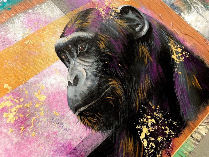 #newideas #experimentingwithgoldleaf #apes #acrylicpainting #ontheeasel #newconcepts #gorillaart #primates