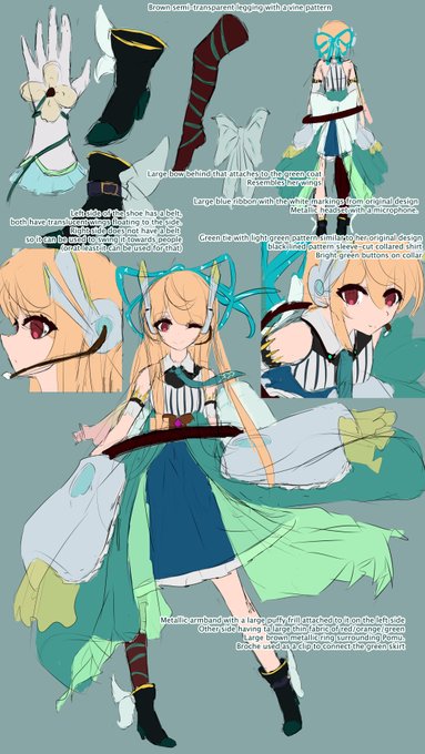 I was playing around with a futuristic idol concept of Pomu, and this is what I got. I'm sorry for the sketchyness!! (I took too long on thinking) I hope this represents the idea well.