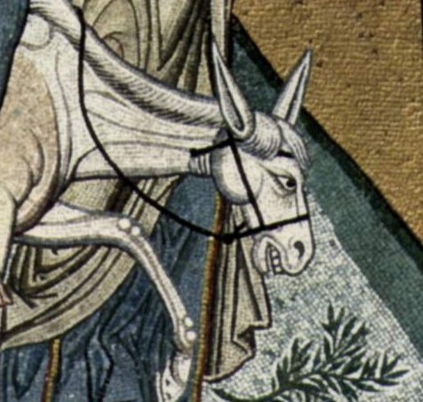 The long-suffering #donkey making the Entry Into Jerusalem on Palm Sunday in this beautiful #byzantinemosaic (c 1150) in the Palatine Chapel #Palermo
