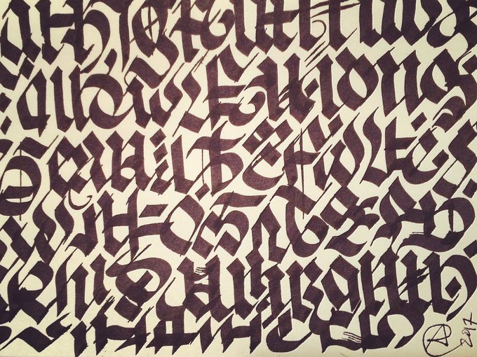 I got some parallel pens for christmas and am learning to ink with them. it's fun as hell but i keep smudging it lol #parallelpen