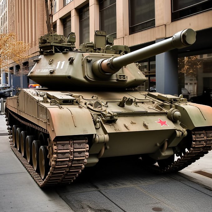 Prompt: 'a tank made purely out of cotton candy --v 5 --ar 16:9' with links to source images as input