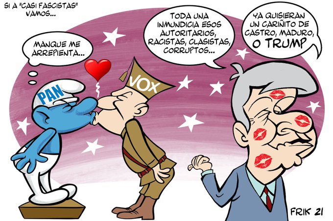 Unos pitufos [representativos del azul PAN  @AccionNacional] que han comparecido en el #humor🇲🇽 de @falconvoy y @Perikoperro con motivo de la presencia de #Abascal #VOX en #México