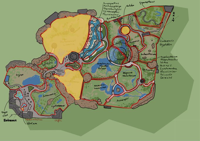 Plateosaurus Kindergarten, Wakaleo enclosure and Shringasaurus temple.