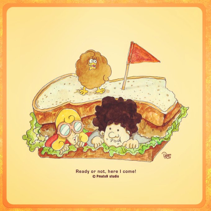 Ready or not, here I come!!!#pmats9 #animation #design #coovo #illustration #illustrator #Japan #hide #seek #hideandseek #sandwich #breakfast #デザイン #イラスト #ころもどり #アニメ #アニメーション #冬休み #かくれんぼ #もういいかい #まーだだよ #サンドウィッチ #朝食 #サンド
