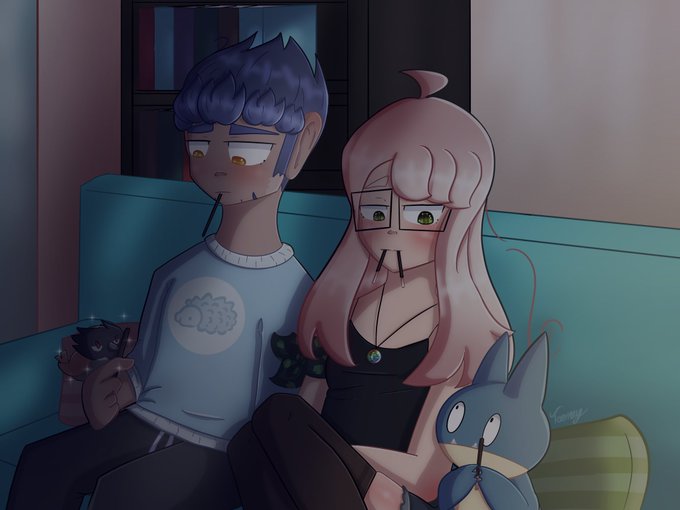 So, I heard today was #pokyday and i wanted to draw the #skullgirls gfs, #cerebella and bonnie, my oc