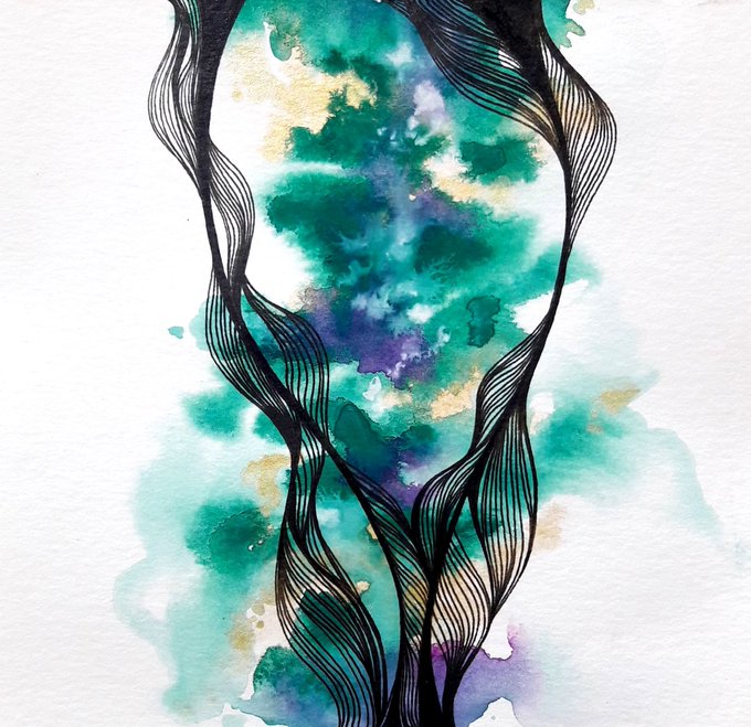 Lines dance together and intertwine to picture the feelings of the Creator.