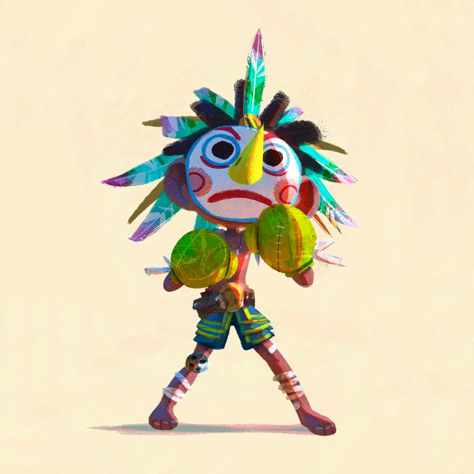 #PraCegoVer nos desenhos, um menino sem camisa, com máscara de pássaro e luvas de boxe, pronto pra briga.