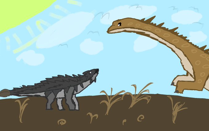 #PRDinovember2021 24. Sword and Shield - Thyreophorans. Stegosaurus gets a little too close to the personal space of a cranky Gargoyleosaurus.