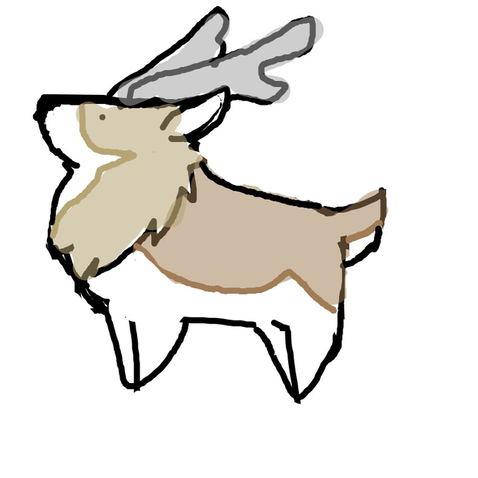 あいこ @puk_aiko さんのツイートを参考に頑張ってみたカムシカ。犬っぽいな…!?と思いながらお手本と見比べたら首が短かったようで…^^;でも描き方とても分かりやすくありがたかったです! #dqラクガキ帳