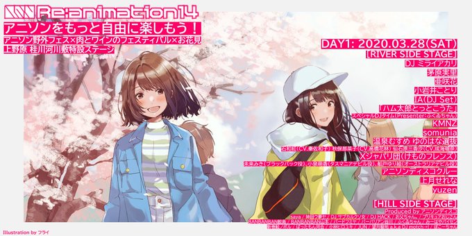 アニソンをもっと自由に楽しもう!日本最大のアニソン系野外DJフェス『Re:animation 14 in Uenohara』2020年3月28日-29日 桂川河川敷特設ステージ #reani_dj https://t.co/9oYlm7hNbR