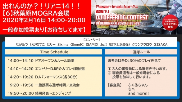 来週22日の追加会場でリアニ14のDJ公募は最後になります。