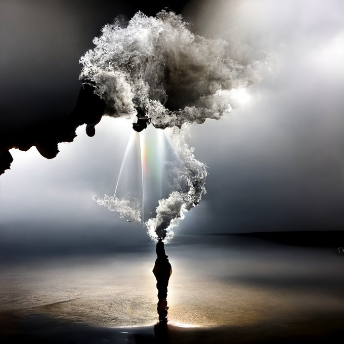 Took those black ink clouds and twisted it with a simple new prompt: refracted light through smoke