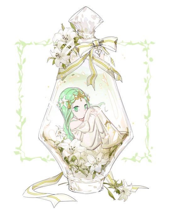 Rhea and Byleth in perfume bottles (commission)