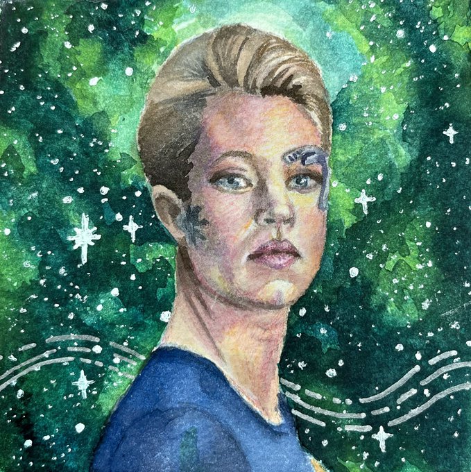 #womenshistorymonth #womenshistorymonth2021 #seven #sevenofnine #voyager #startrek #borg #jeriryan #watercolorpainting #ArtistOnTwitter
