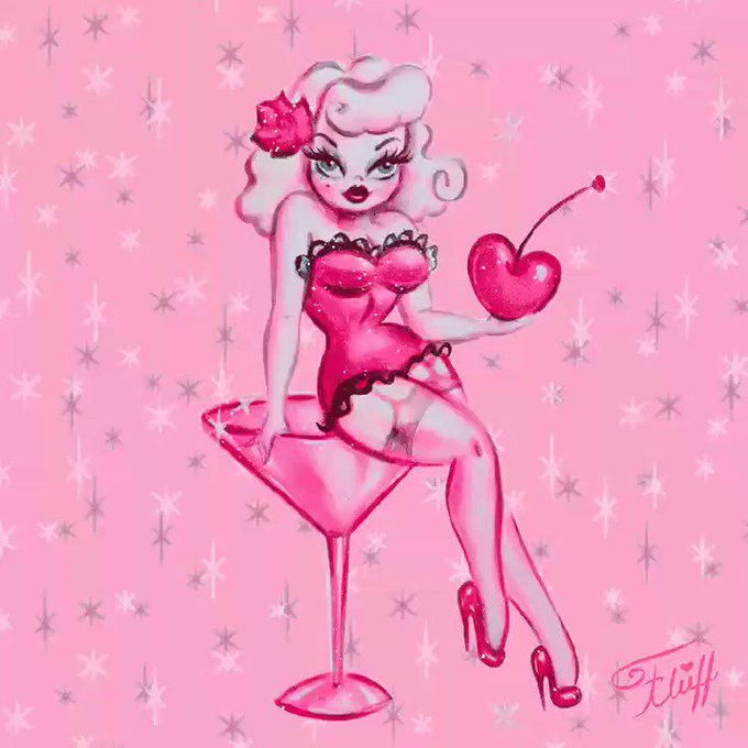 #friday #friyay #fridayvibes #pinupdoll #martinis #pinkmartini #pinkart #vintagestyle #retroart #rockabillystyle #burlesque #showgirl
