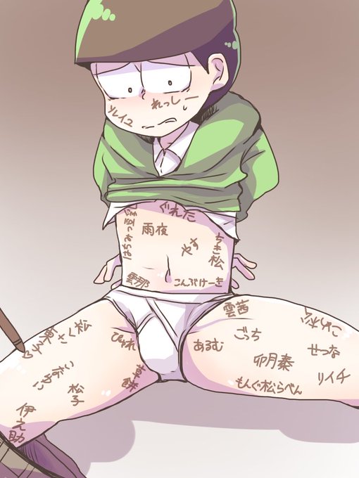 「RTしたフォロワーさんの名前を推し松の体に書く」にたくさんの反応ありがとうございました!推し松全松です(^O^)文字小さくて見えないかもしれませんが・・・