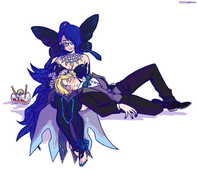 commissions for @lilnaomi1's demon form mc, as well as a quiet after-party moment with mr. satchan💚✨ (with bonus! rough stage)