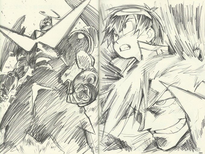 Il y a donc plusieurs types de doujinshi d'animateurs. Il y a par exemple le Otsukarebon qui est un livre souvenir par plusieurs staff de la série du réalisateur à l'ingénieur son en passant par les animateur ou le scenariste. Ici par exemple le Rakugaki Drill de Gurren Lagann.