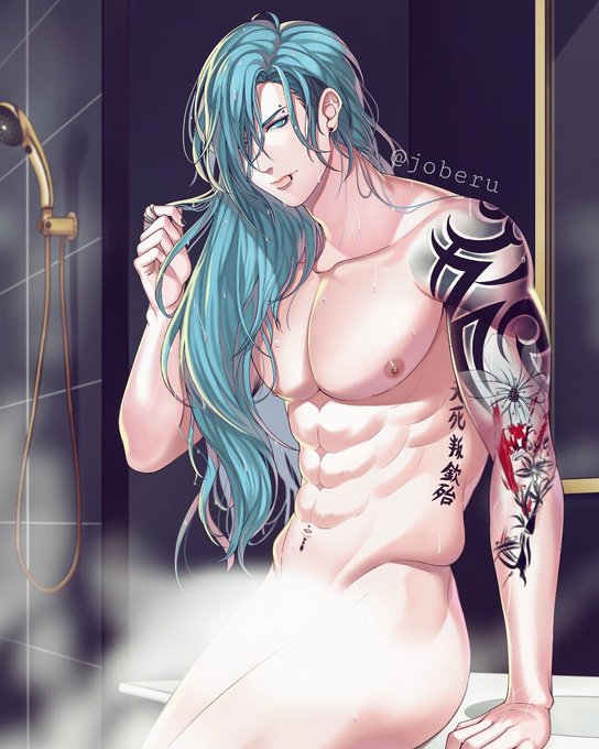 #commission #uke #seke #gay #tattoo #bluehair #wet #originalcharacter #abs #muscle