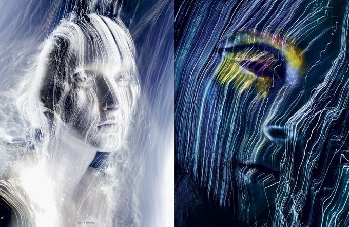 “you look electrifying” editorial for i-D Winter 2014 issue featured models Nika Cole and Diana Khalitova photographed by Sølve Sundsbø, makeup by Val Garland, hair by Angelo Seminara and manicure by Marian Newman