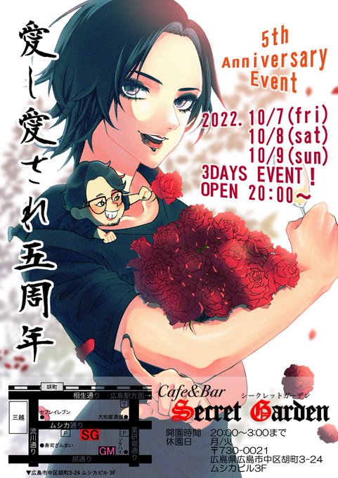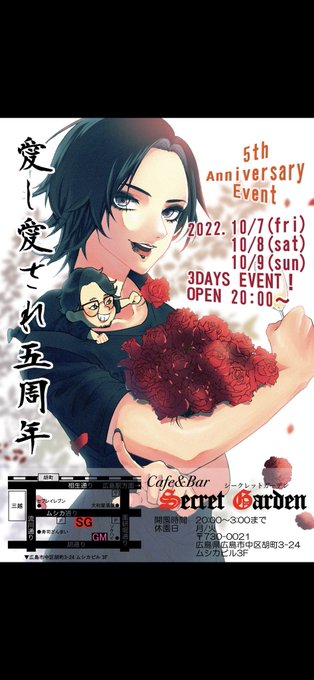22. 10/8 (土) SGです💐 昨晩も本当に沢山のご来園 誠に有難うございます🙇♂️💐 本日も 20:00〜開園💐✨ 本日5周年イベント2日目! そしてリアルSGバースデー! 5歳!!! 5年前の今日に 大熱出したのは遠い思い出…🤣💦 今宵もご来園心より お待ちしております!💐✨🤟 #広島 #SGなう