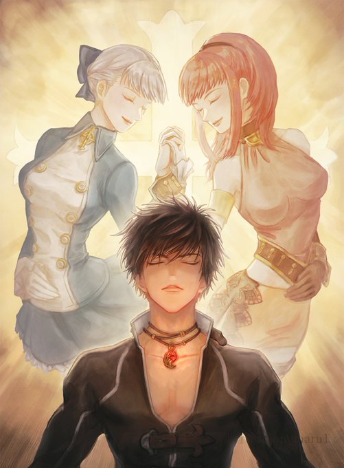 大遅刻ですがシャドウハーツ20周年おめでとうございました!去年1のウルとアリスを描いていたので今回は2とフロムも混ぜて主人公&ヒロイン達でシリーズ20周年をお祝いにしたかった…!という絵です。