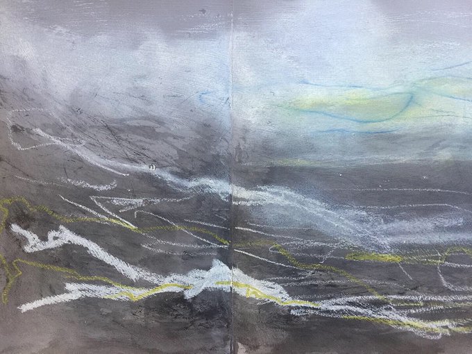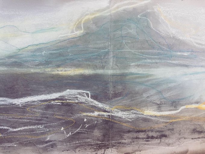 We had our first flurry of snow on Thursday and now more gales, lots of stormy weather sketchbook inspiration, energy & winter light #shetlandlight #winterlight #landscape #sketchbook #shetland #coastal #shetlandweather #shetlandart #winterlandscape #oilpastels