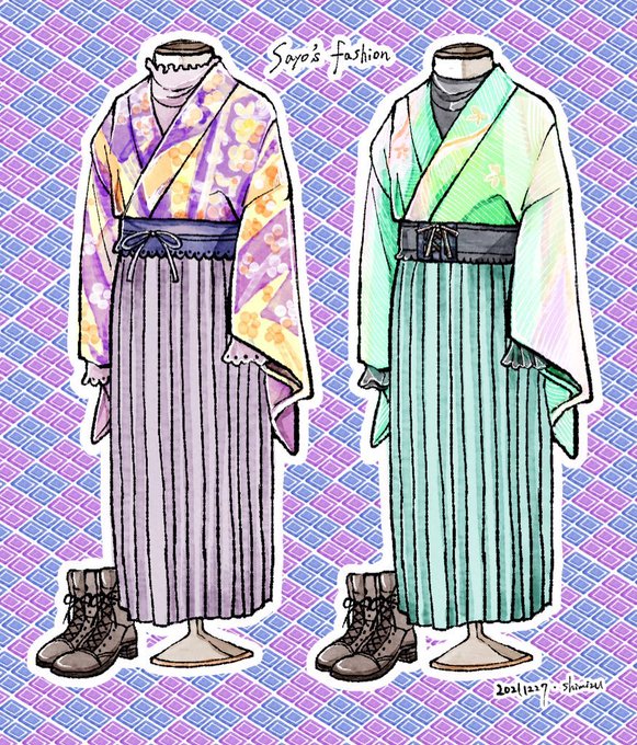 北織さよさん(@sayo_kitaori)の着物コーデのトルソーを描きました🌸 着物コーデ可愛いです💕 #shimizuの練習