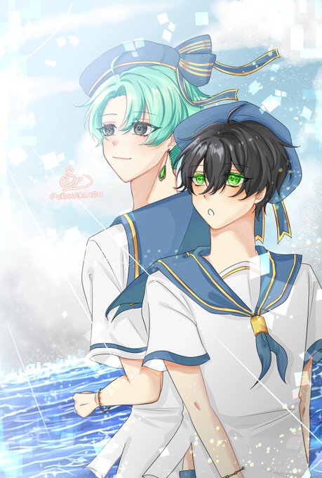 Such a hot summer day~ (Aosjsoslssl what is background sobs) #jecho_oc #shinseongyoon #shinjikazuki #artidn #summer
